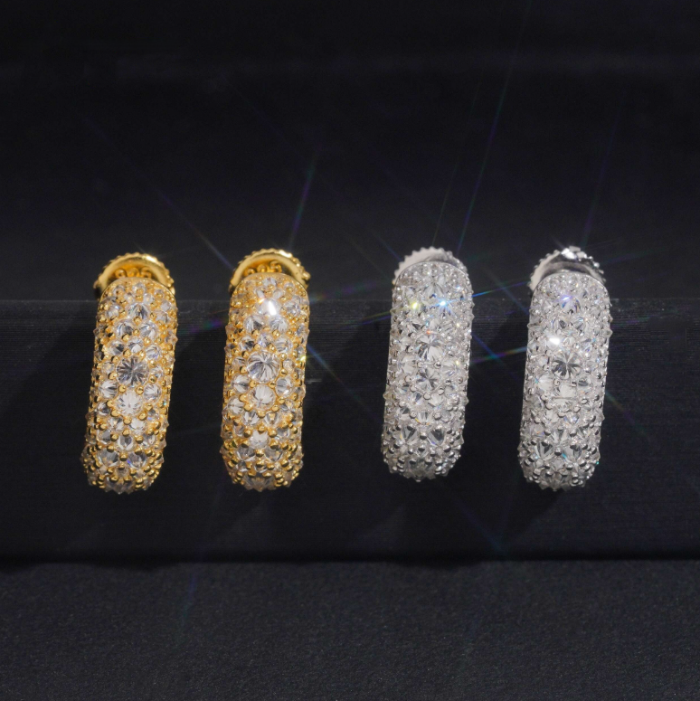 Confectionnées en argent massif 925 et entièrement serties de moissanite , elles offrent une brillance exceptionnelle, reconnue pour dépasser celle du diamant.